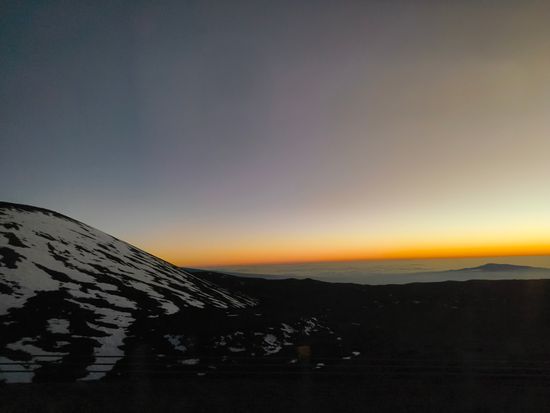 当日は平地でかなり曇っていて、夕日、星空共に見られるか不安でしたが、マウナケアが雲より高い位置にあるため、雲海の中で夕陽を見ることができとても幻想的で素晴らしかったです。