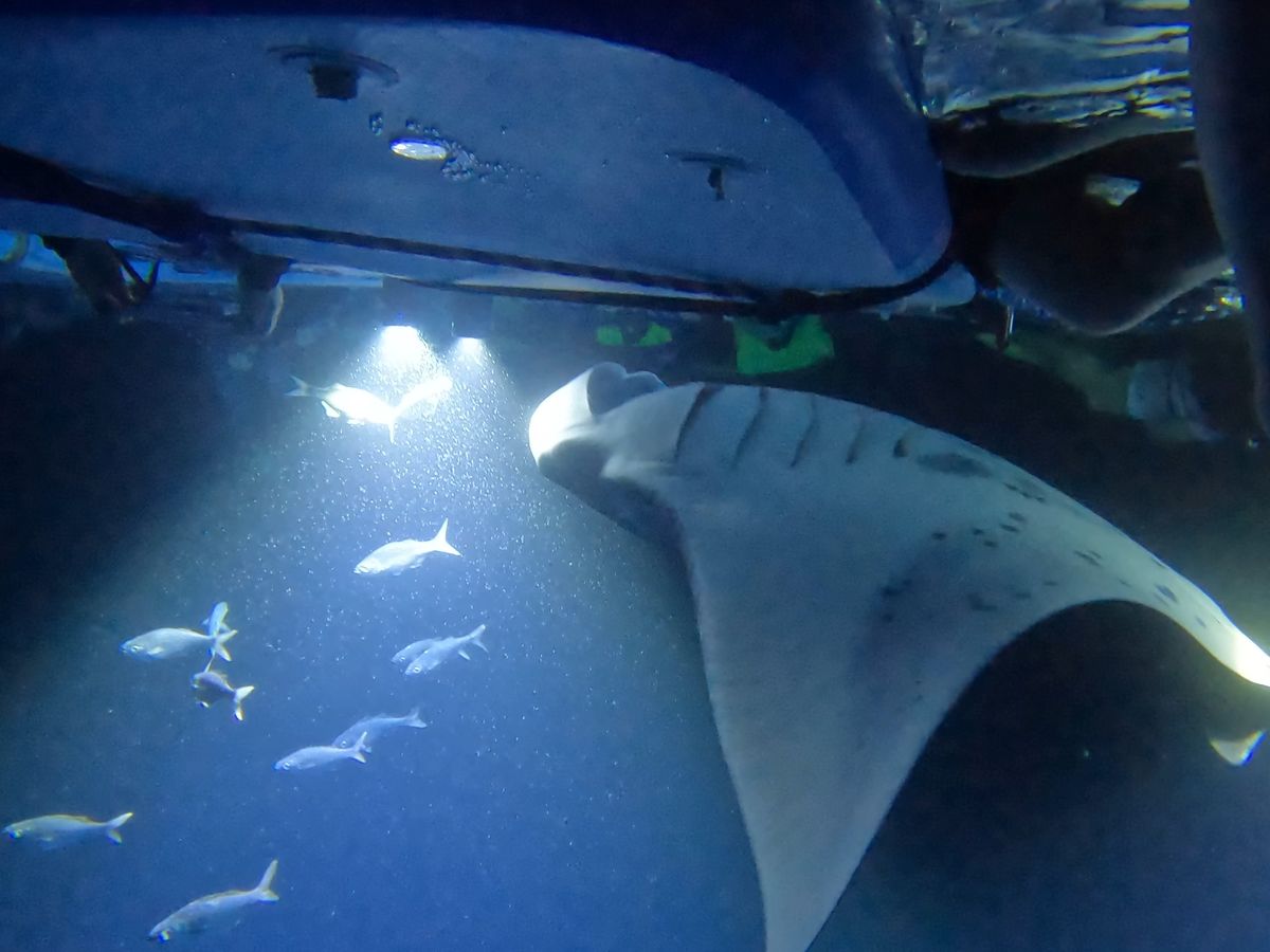 I heard that the only place in the world where you can definitely see them is on the Big Island, so I signed up for the tour. Four manta rays swam around us, coming very close. It was my first experience being near such large creatures. Also, being in the quiet ocean at night with the mantas and fish gave me a sense of unity as a living being on Earth, creating a mystical feeling. I highly recommend it. Next time I go to the Big Island, I think I will ask for this again.