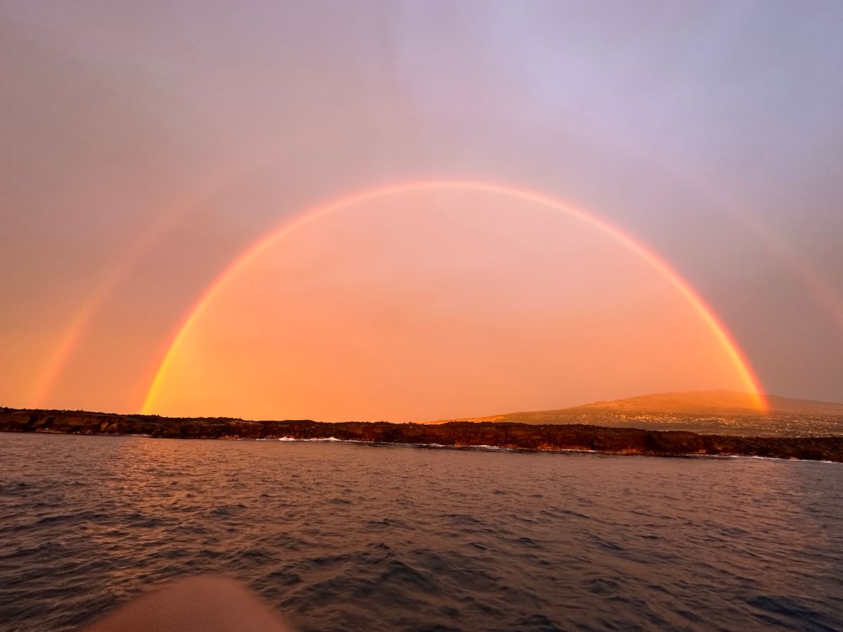 Thank you for participating in our manta tour. We also appreciate your wonderful photo post. The double rainbow brings double happiness, and we are delighted that you were able to see the manta rays. The summer sea has its own unique charm as well. All of our staff sincerely look forward to your next visit. Mahalo!