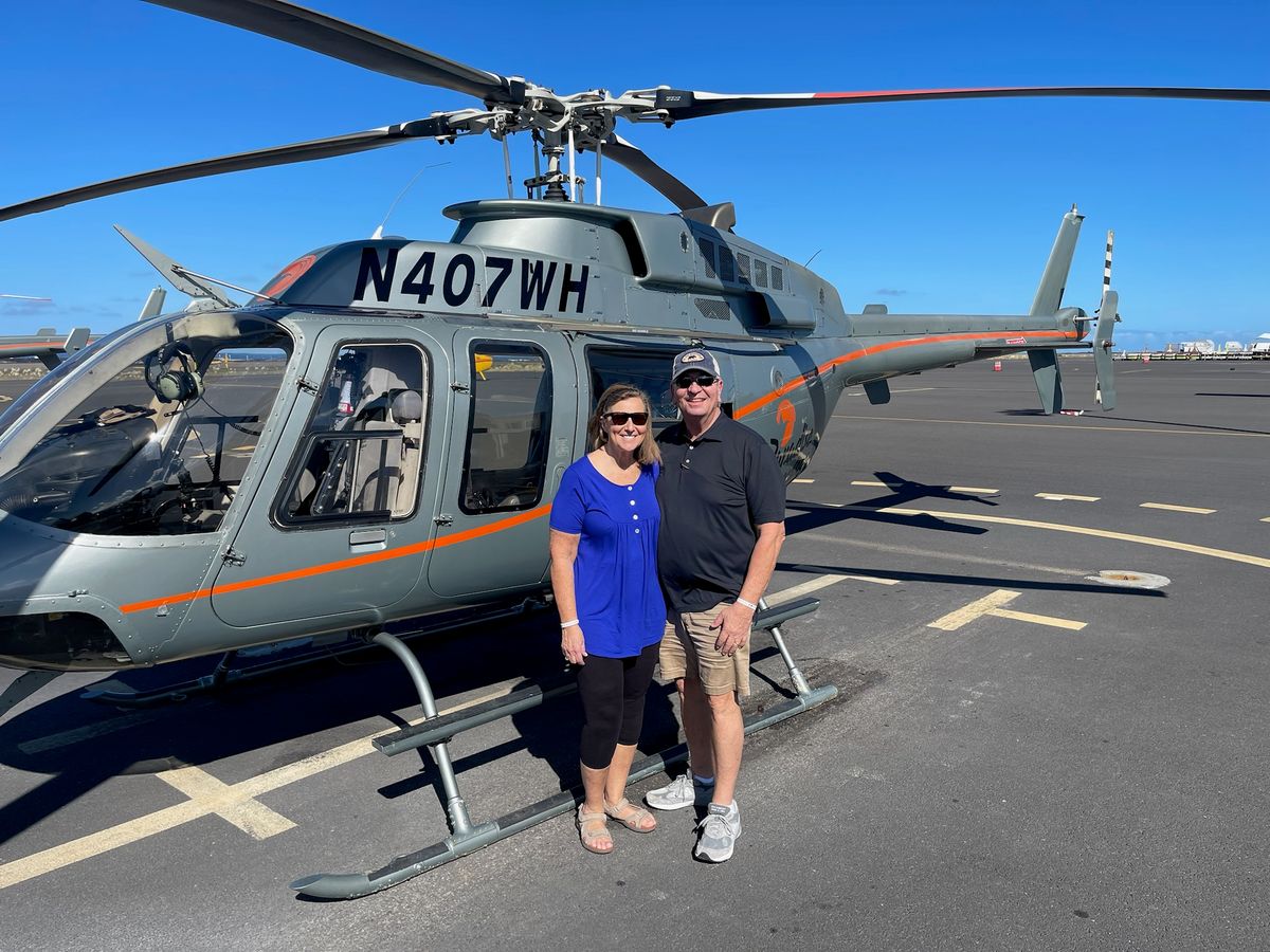 Great trip with Tyler being our pilot. Not only was he a great pilot he was very knowledgable about the Big Island and about things a vacationer would not know. Saw many whales and spinner dolphins.. Circle Island tour was a great experience! Support staff was great and gave us all the information needed to make the trip great, but also safe!