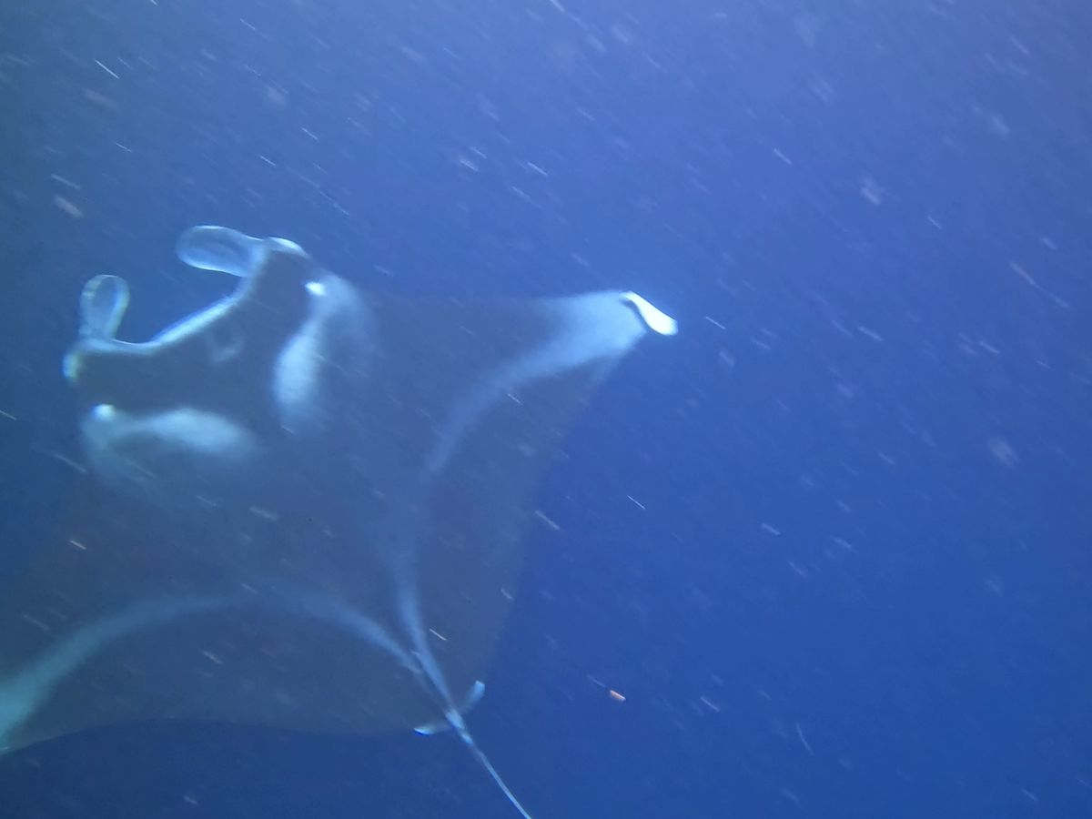 On June 10th at 18:00, we saw the best sunset, but we only caught a glimpse of one manta passing by in the distance. My husband didn't see any at all.