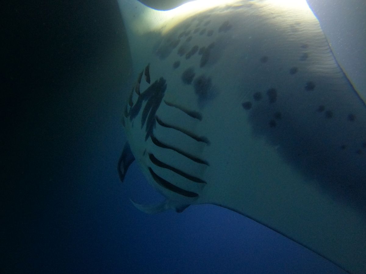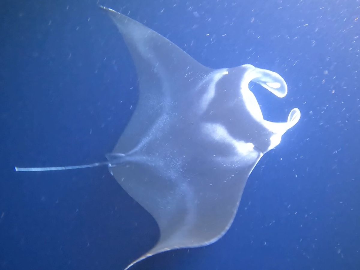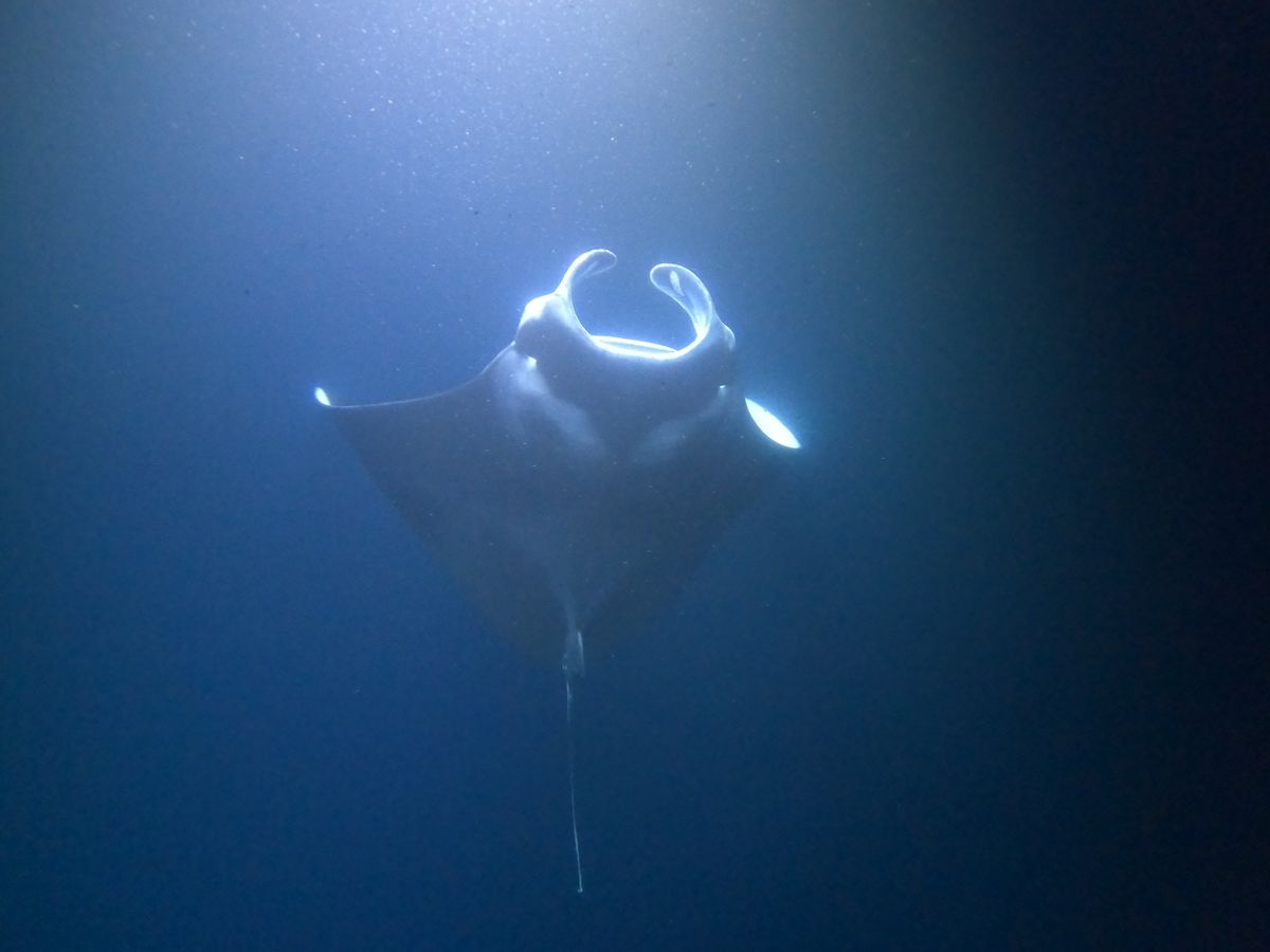 5/2でしたのでまだ夜の海は寒かったです。でもそんなことを忘れるくらいマンタが美しかった!見られたのは1枚ですが、ずーーーっと目の前でクルクル回転してくれていたので、口の中も丸見え、肌感もしっかり観察でき、手を伸ばしたら触れるほどです。(もし触ったら強制的に船に戻されます。彼らを尊重する強い姿勢が素敵だと思いました)神秘的な時間が続き、寒いのも忘れて夢中で見入ってました。
