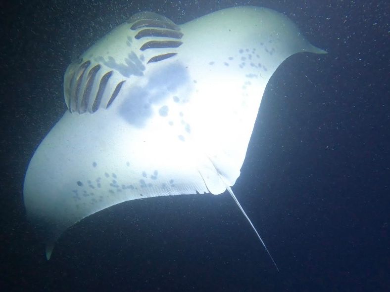 数年前のツアーと比べて若干早め(ちょうど夕日が沈み切る直前)から水に入り、完全に暗くなる前位に水から上がりました。それでも、幸運にもマンタが近づいてきてくれて興奮でした。今回は多数というよりは2匹?位ではありましたが。