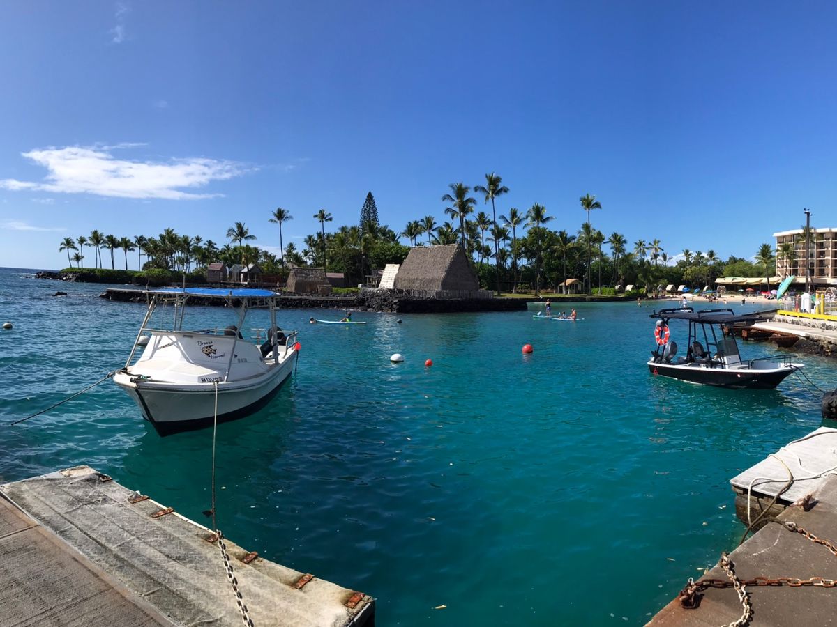 透明度抜群の穏やかなケアラケクア湾でシュノーケリングは子供も楽しめました。我々は運良くイルカの群れに遭遇し、我々が乗っている船とイルカの集団が追いかけっこしていました。可愛かった!