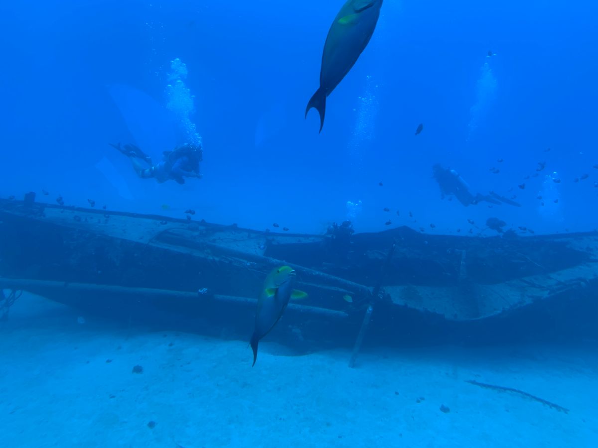 Lucky for us, a large pod of dolphins came by multiple times, and I lost count of how many dives we did. Interestingly, no other boats were out that day, so it felt like we had Aloha Tours all to ourselves.