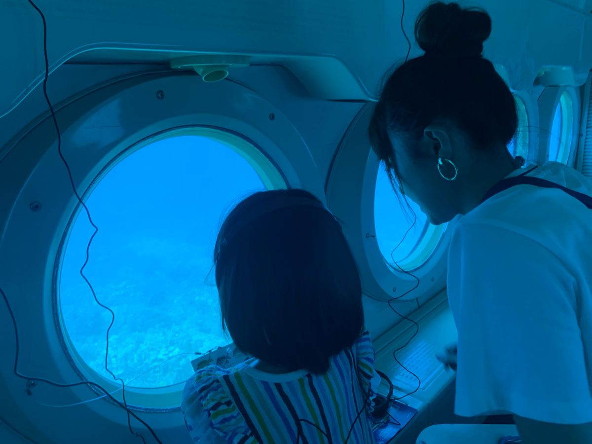 We experienced it together with our children. The submarine experience lasts about an hour. We used a Japanese guide, but it became annoying halfway through, so we stopped using it. The atmosphere created by the crew is enjoyable enough. If you can understand English, they also tell jokes along the way, which makes it even more fun.