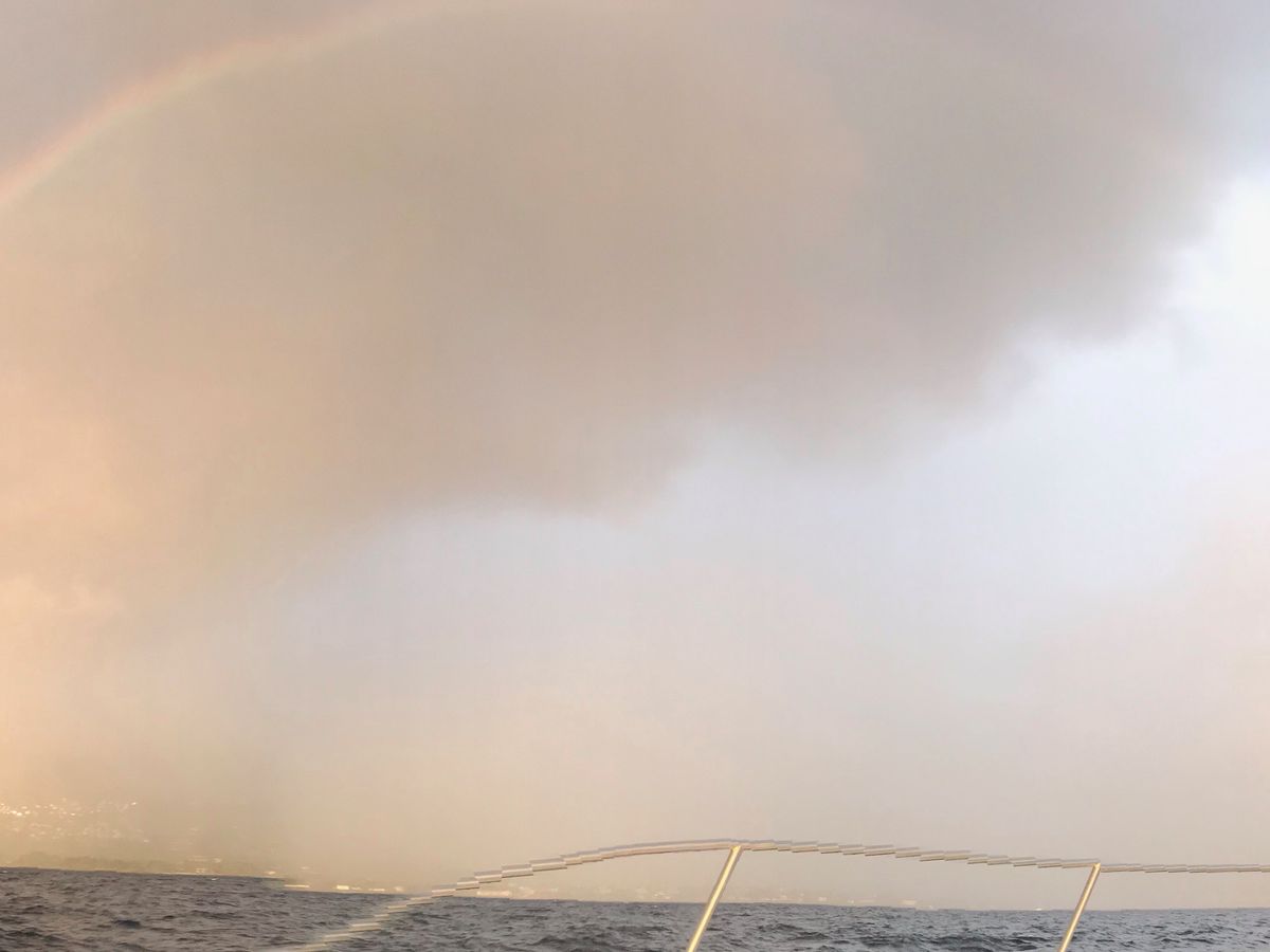 そんなシチュエーションのおかげで、半円の大きな虹が見えました。その上、二重に!ダブルレインボーになりました。