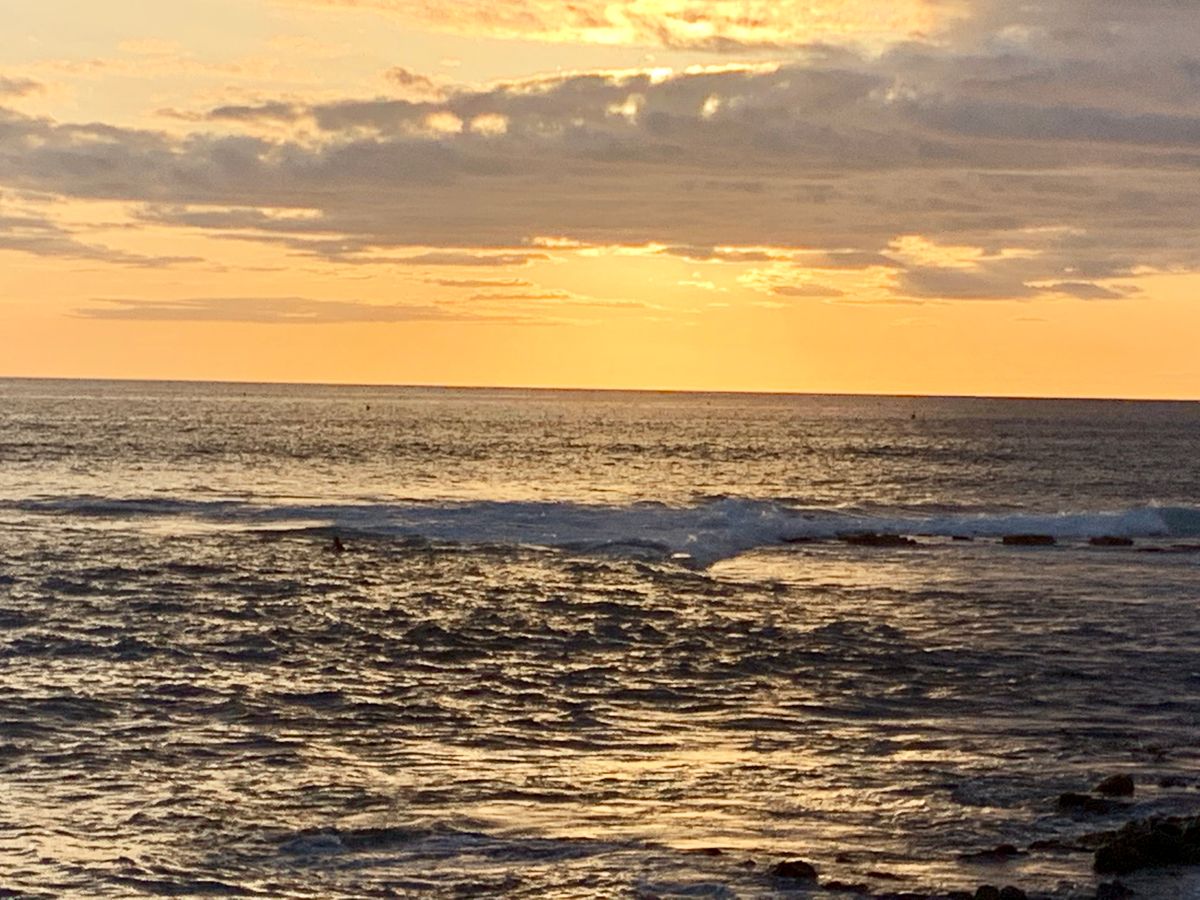 まず8:00にオフィスに行き、説明を受けて事前練習をしていざ、ビーチまではまた自走。オフィスから5分くらいのビーチです。着いたらイントラ2人が待機していて2人で4人をレッスンしてくれました。だいたい2人ずつ交互に波乗りする感じ。その間は浮きにつかまって休憩。説明してくれたお姉さんやイントラのお兄さん2人は兄弟やいとこで家族でやってるって言ってました。全部英語だけど、別に問題なく参加できました。