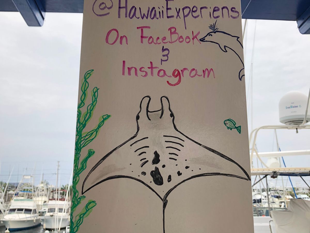 私は、とりちゃんから「参加したら?」と何度も誘ってもらいましたが見学だけの参加でしたがとても後悔をしています。娘と息子は、45分間マンタを近くで見て中には、傷ついたマンタちゃんがいたり4回もぐるぐる回ってくれるマンタちゃんがいたりで最高の体験が出来たと言っていました。次回は、マンタちゃんを近くで見ることととりちゃんに会いにハワイ島に行こうと思っています(^O^)