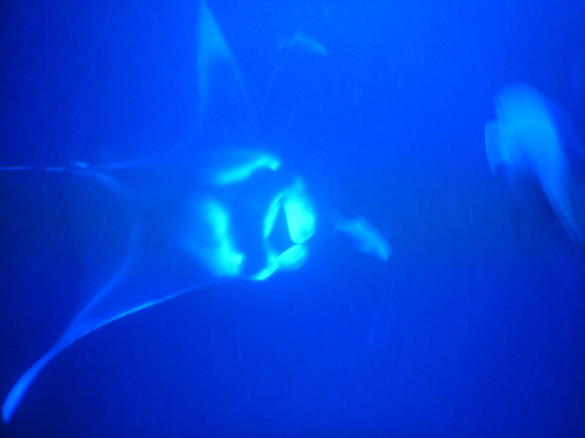 水族館で見るような光景。とにかく大きい。光で集まったプランクトンを食べているので、口を空けたままめちゃ近くをすれ違います。人間二人分くらいの大きさかな。ちょっとこわいくらい。