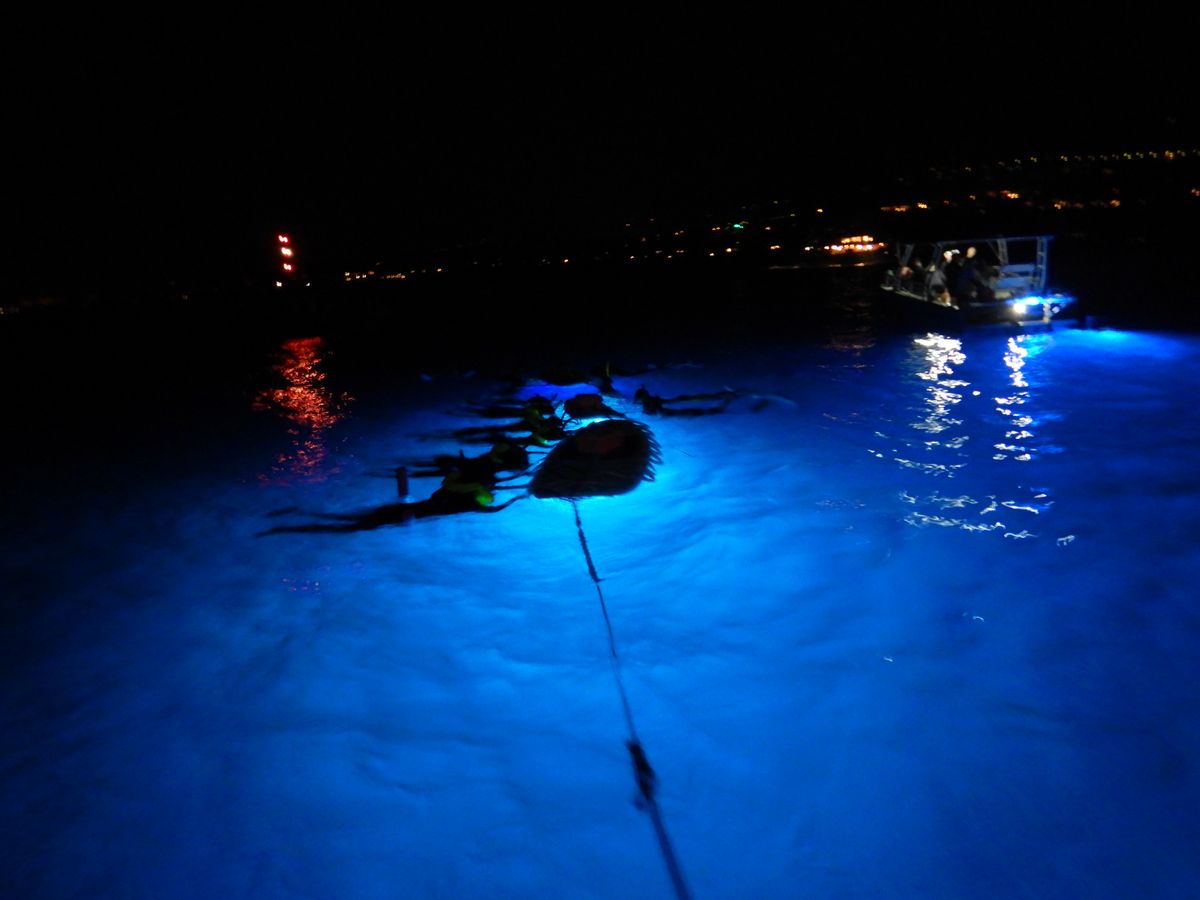 You can only have this kind of experience in Hawaii. It's just so close! In fact, we encountered them several times. As soon as we turned on the LED lights on the SUP boards for everyone to catch, the mantas came right over.