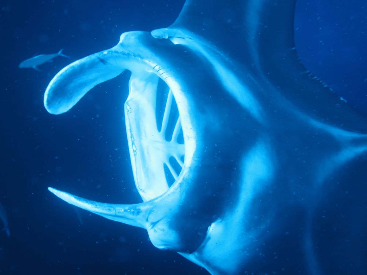 マンタは本当に大きくて、ぶつかるのではないかと思うほどすぐ近くまで大きな口を開けて近づいてきます。しかし、こちらには当たらずにくるりと回転するのが不思議でした。