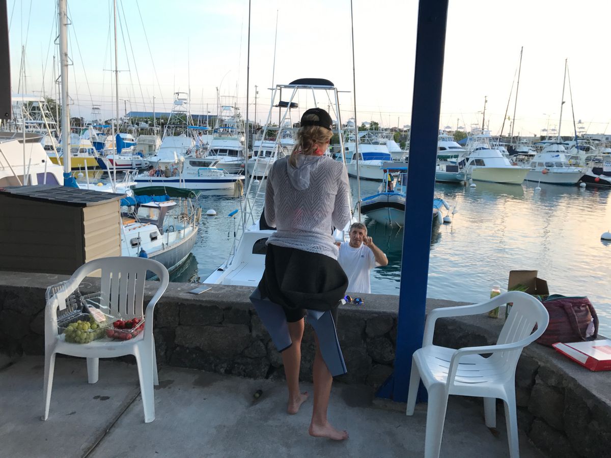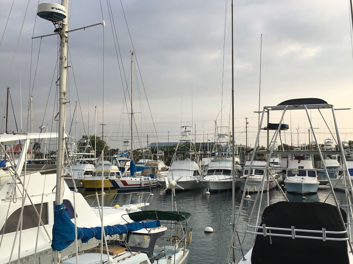 We headed to the meeting place at Honokohau Harbor from Waikoloa by rental car, but there was a long traffic jam heading towards Kailua about 3 kilometers before Kona Airport, so it's better for those using a rental car to leave their accommodations early.