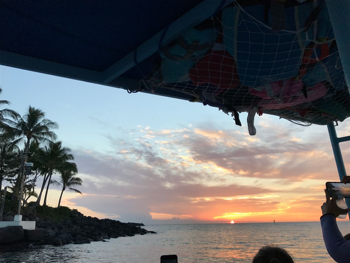 マンタのポイントまで、船のヘリに乗って、バナナボートのようなアトラクション気分で行きました。その際に、船から見える夕陽は、とても綺麗で感動しました。皆さんのレビューにあった船酔いが心配でしたが、全くそれは無かったです。