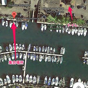 We stayed at the Hilton Waikoloa Village condominium. Since there was no shuttle service to the tour destination, we headed to Honokohau Marina with the rental car we had. We drove south on Highway 19, turned right onto Kealakehe Parkway, and quickly spotted the blue-roofed mall, so we didn't get lost.