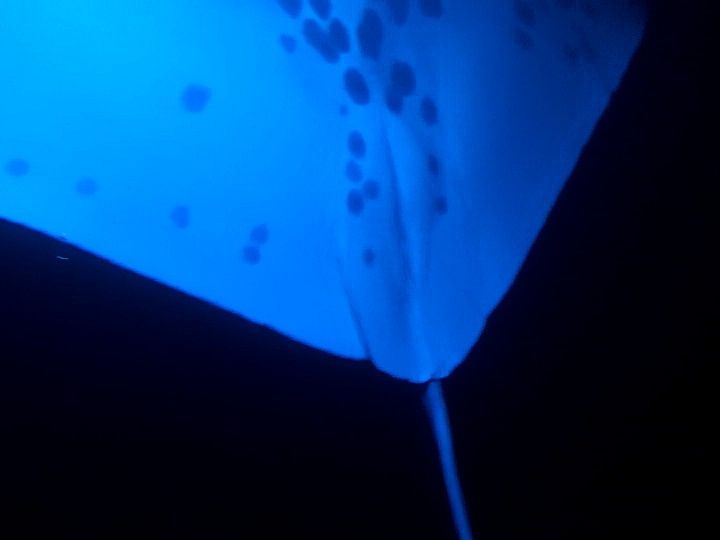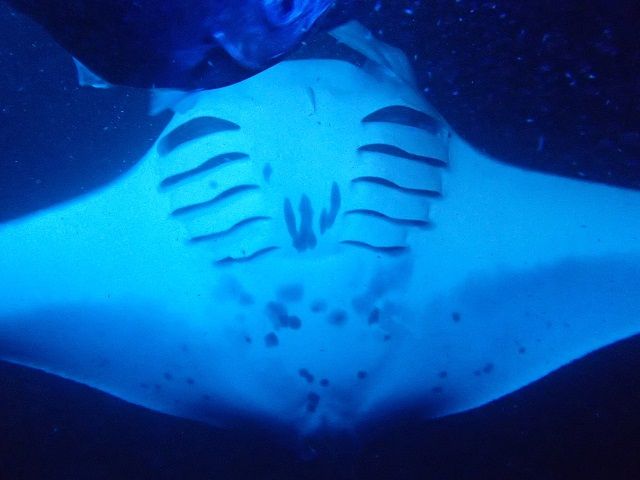目の前ぶつかるくらいにマンタが迫り、迫力満点でした。おなかや大きい口の中まで目の前で見えて、感動しました。小魚も寄ってきて、つかみ取り出来そうで大変満足しました。
