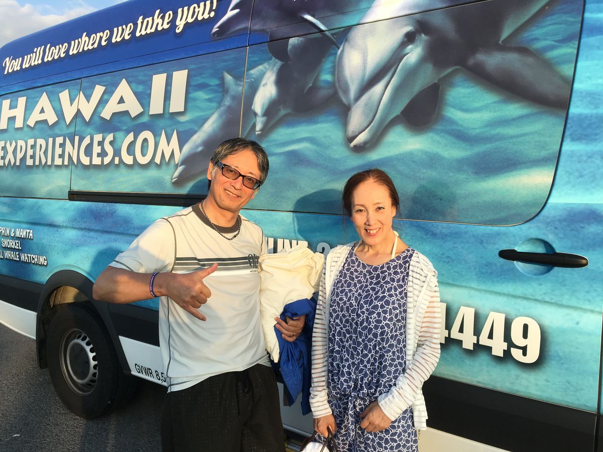 The Japanese guide, Daisuke, who came to pick us up, was very friendly and wonderful, making the bus ride enjoyable from the start. We were really surprised by how many dolphins we encountered right from the beginning. There are many dolphin tours available, but I'm really glad I participated in this one. If you want to swim with dolphins on the Big Island, I definitely recommend this tour. I want to join again, so I will work hard to save money and go back once I can dive.