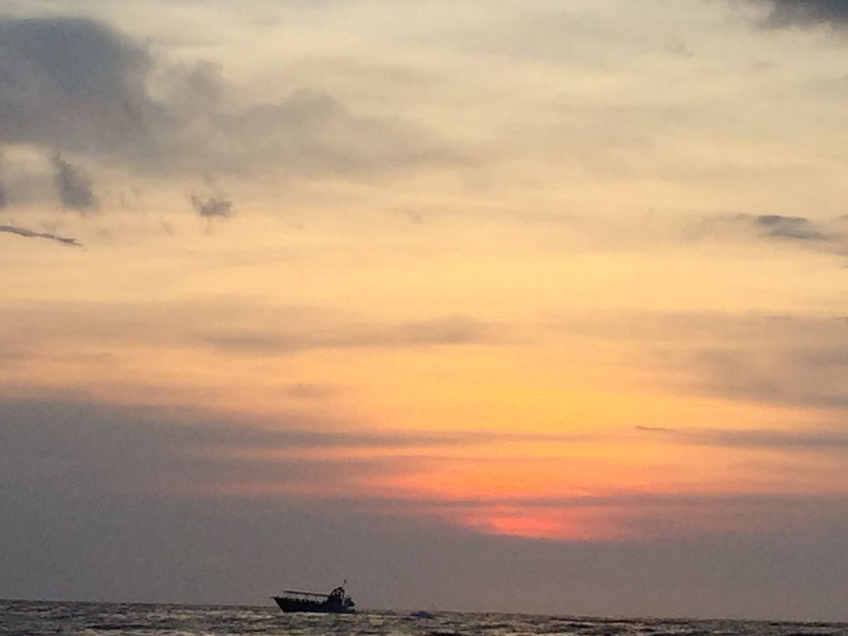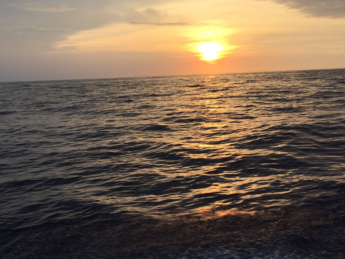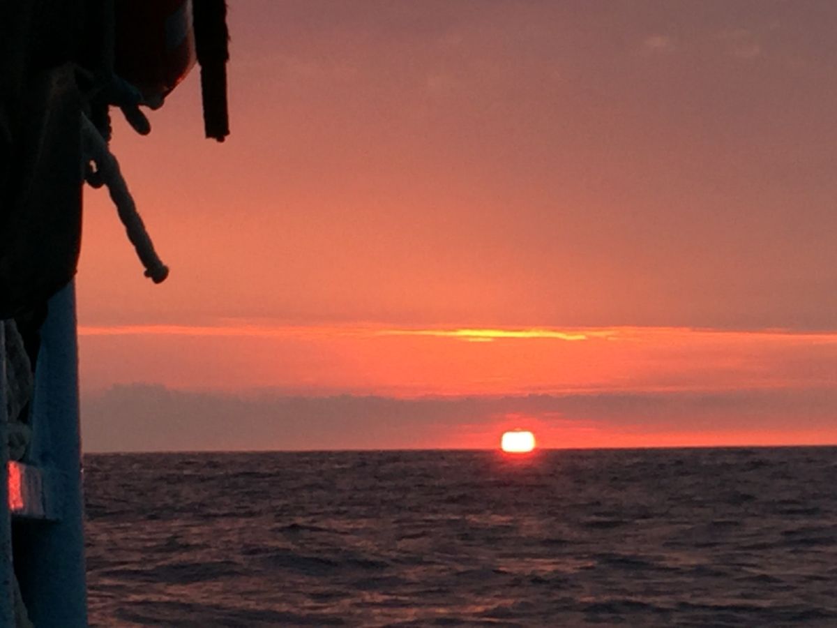 絶景のサンセットだったそうで、真っ赤に燃えた空に太陽が沈む様は本当に