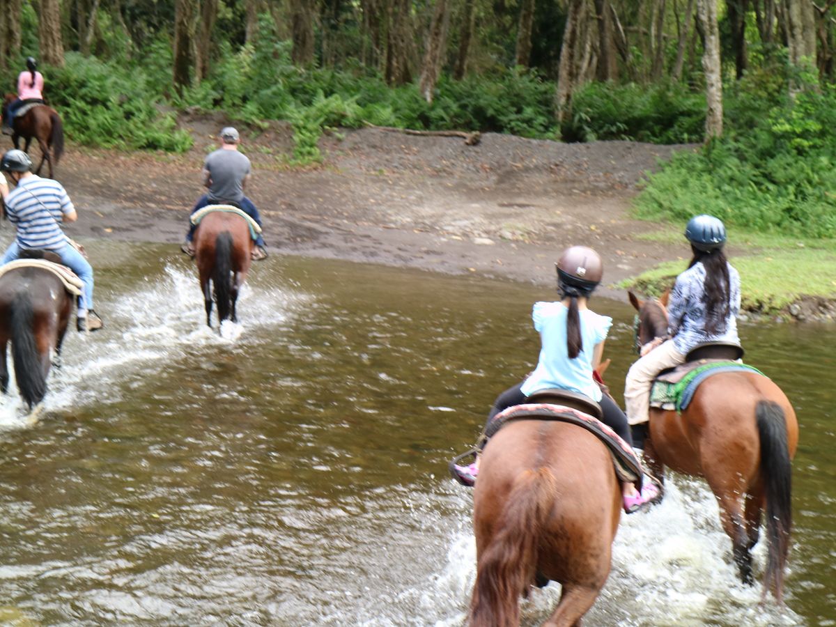 ワイピオの乗馬は2回目でした。今回、渓谷へのTryでしたが、川にガンガン入って楽しかったです。前回は、ガイドさんと主人と私の3人でプライベートツアーみたいで、ガイドさんもゆっくり英語&日本語でしゃべってくれたので、よく理解できました。今回は、10人ほどで日本人は1組(2人)でしたので、まったく、聞き取れなかったのにも関わらず、楽しかったです。景色は、2014年に行った山を登るツアーのほうが、感動できでしたね。でも、気軽に馬に乗れる、濡れることを気にしないでガンガン深くても行く、日本では考えられない体験を気軽にリーズナブルな価格で楽しませてくれます。非常におすすめです