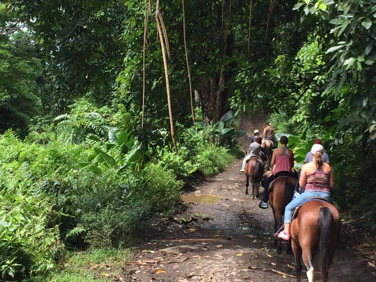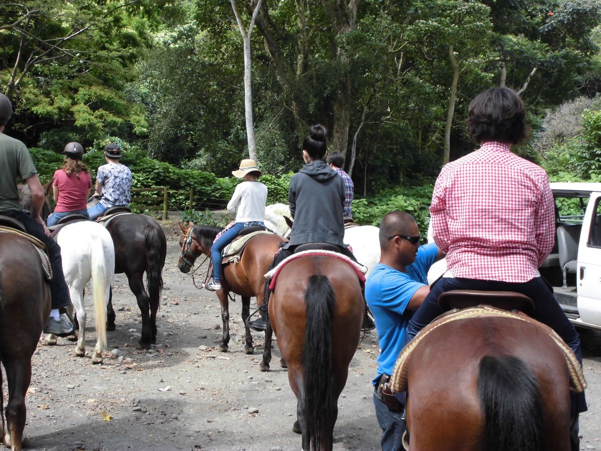大人3人子ども2人(10歳、13歳)の5人で参加。他に米国人家族4人と合計9人のグループでした。集合場所で受付してくれたお姉さんが4WDを運転して谷底の厩舎まで行き、そのお姉さんが馬の先頭でリードしてくれました。後方に若い男性がついてくれました。私の馬はとてもいい子で手綱さばきもほとんど必要なしでしたが、後方の妹や姪の馬は草を食べるのに列からはみ出たり、少し走りだしたりもして前半少し気を使ったようです。でも、後方の男性がすぐに助けてくれてたので心配ありません。たっぷり2時間、鮮やかな谷底の緑に癒され、パカパカと蹄の音にも癒され、全員大変満足なアクティビティーでした。