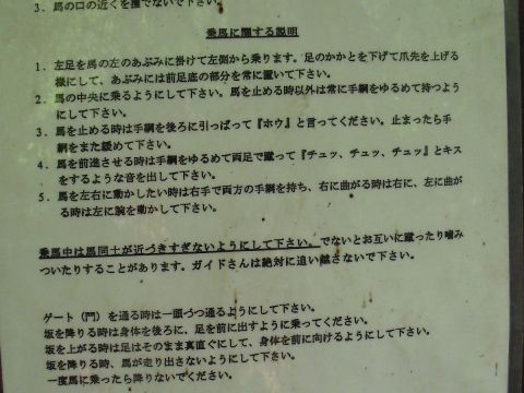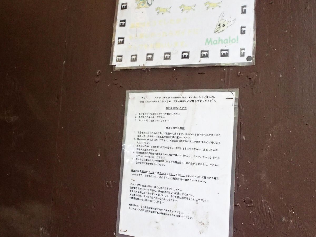 ただ、乗馬後の待機場所に日本語で乗馬時の注意事項があったので、英語が話せない