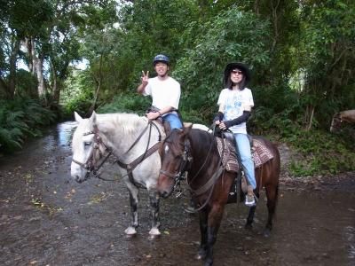 予約する時、レビューがなかったのでワイピオの淵を行くツアーと迷い、でも川を渡ったりしたかったのでこちらの会社を選び、不安なまま参加しました。でも良い意味で想像を超え、本当に楽しい時間が過ごせました。ガイドさんが楽しませようとしてくれているのがわかるし参加者みんなで(日本人も結構いました)盛り上がり、川をいくつも渡り、野生の馬にも出会いました。ガイドさんがその方ひとりなのかは分からないですが、思っていたより日本語も通じるし、馬の乗り方の説明も伝わります。ワイピオは蚊が多いと聞いていたので蚊よけをかなりしていきましたが蚊の音は聞かなかったです。馬もきれいで潔癖ぎみの私も平気でした。本当に良かった。迷っている方、ぜひお勧めします!