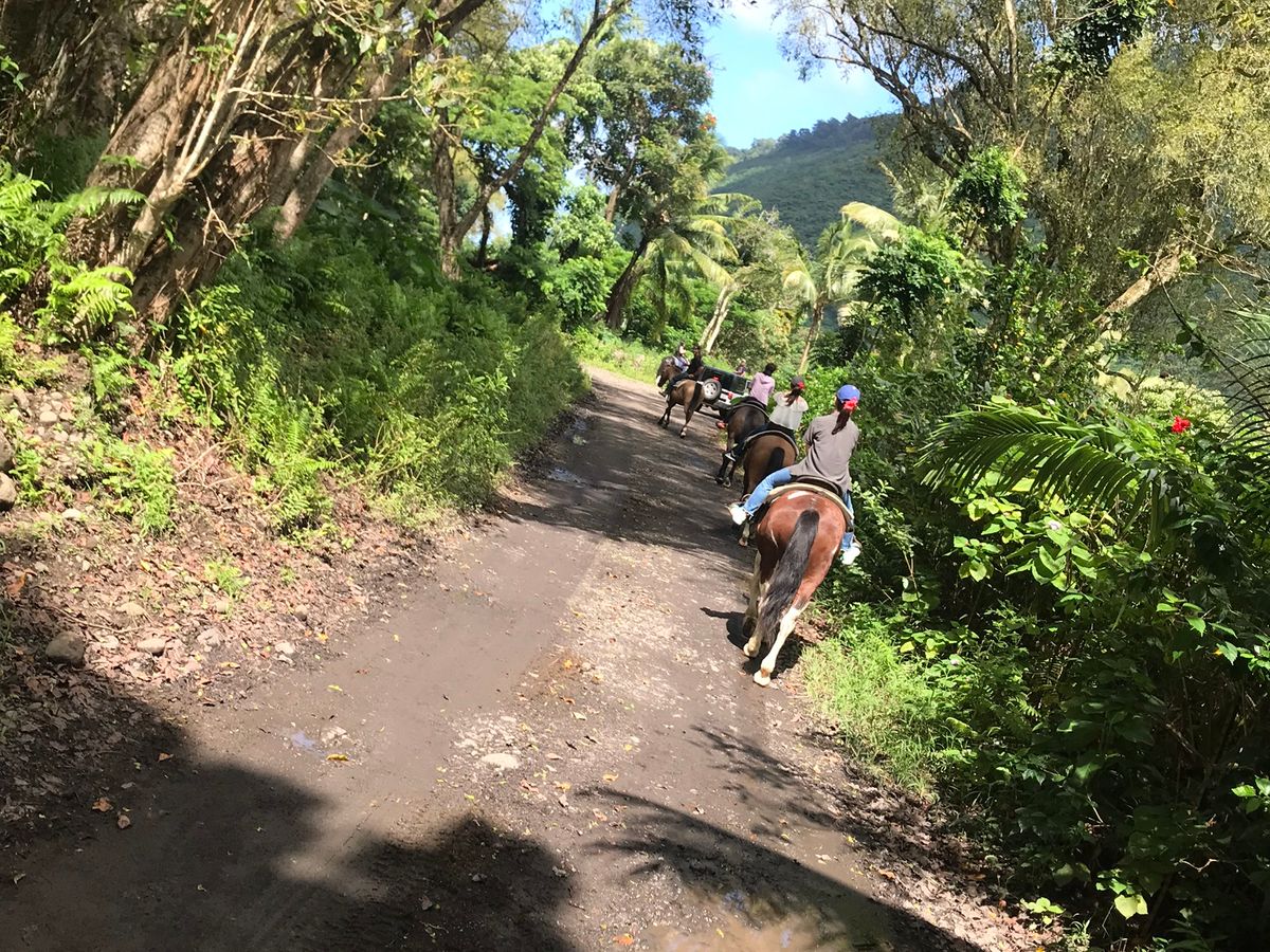 日本語ガイドより少し安かったのでこちらにしましたが、私達以外の参加者みんな外国の方で早い英語がとびかっていましたが、夫婦でガイドをしているシソとトレーシーが何かと気にかけてくれて話しかけてくれたり、乗馬に関する注意事項なんかは少しの日本語を混じえて説明してくれました。娘たちも何も問題なく乗馬を楽しめました。自分ではなかなか行けないワイピオ渓谷の谷を馬で散策できて良い体験ができました。