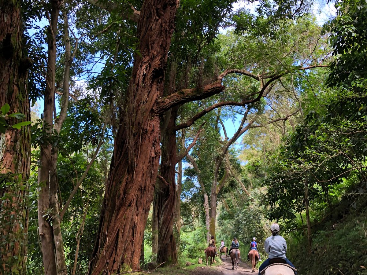 This was my second horseback riding experience on the Big Island, and I really wanted to go to Waipi'o Valley, so I joined my husband. I have some riding experience, so I had no problem with that, but there were eight people max, and everyone except us was from Europe or America. It was disappointing that I couldn't understand the guide's explanations about the plants. We had fun crossing streams and taking pictures in the valley's scenery. Crossing the river was thrilling, but we only walked the whole time. There was no fast walking or trotting. For that kind of riding, it seems better to go to a ranch. If you want to go to Waipi'o Valley on your own, it looks like the only option is to walk down a steep slope like the ones in Hakone, so I recommend joining a tour.