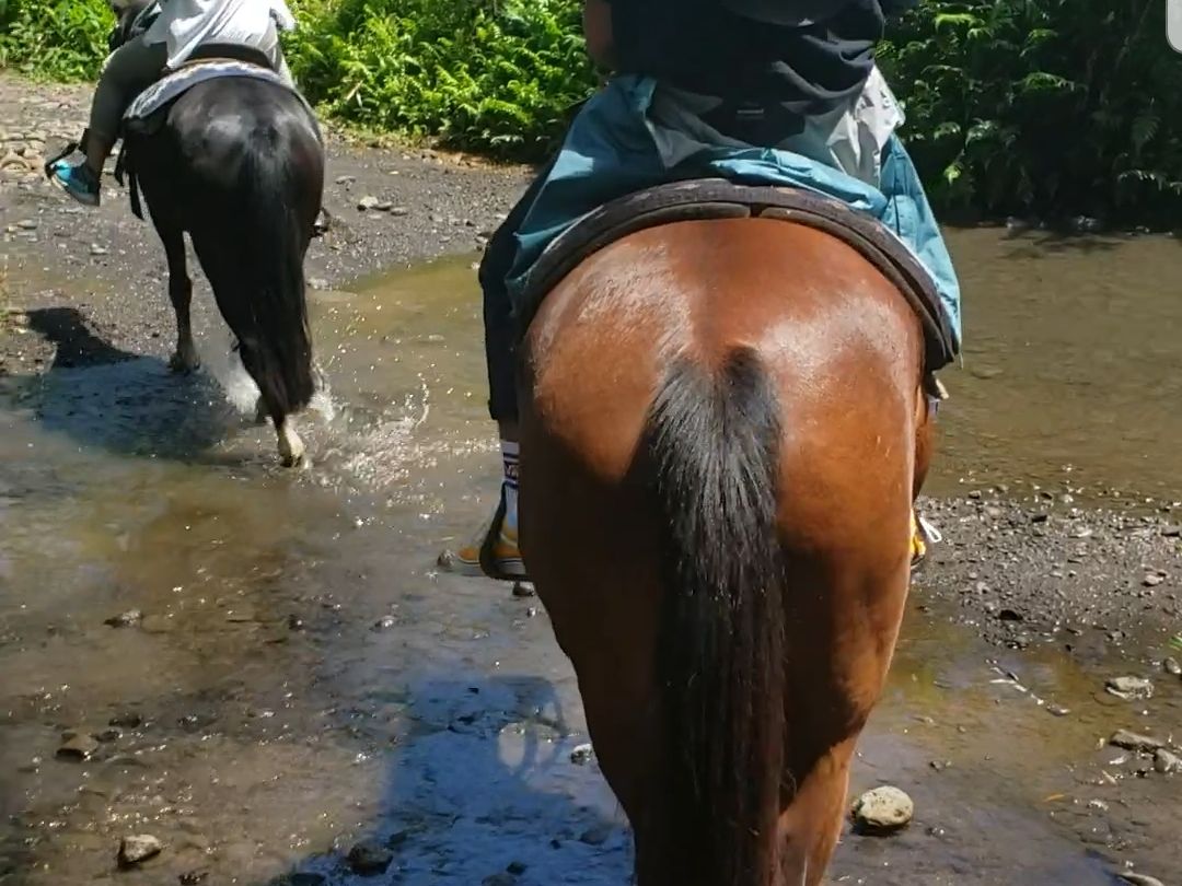 We participated as a family. Including my 8-year-old son, it was the first time for everyone except my wife to go horseback riding, and we were a bit anxious, but we were able to enjoy it thanks to the friendly guide who spoke simple English. I would like to join this tour again when we visit the Big Island. As the title suggests, we drove up a steep slope to the riding area and crossed a stream. This was also enjoyable, so you can have double the fun in one experience.