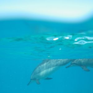 The dolphins swam away quickly, but when I floated and waited, they returned, and I was able to see them perfectly this time. I thought there would be only a few, but there were about a dozen—what a surprise to see such a large group!