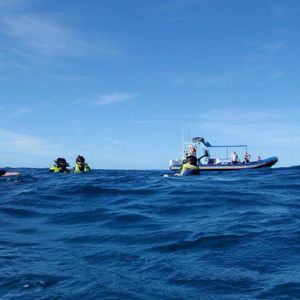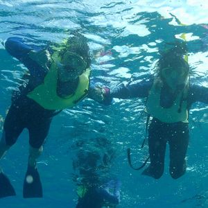 I have some experience with snorkeling and diving, but my niece, who traveled with me, was doing it for the first time and seemed anxious at first. However, she quickly got used to it and started enjoying herself. Mr. Nawata and Mr. Taka understand the behavior and movements of dolphins very well, so as long as you listen to their advice on what to do in the water, you'll be fine.