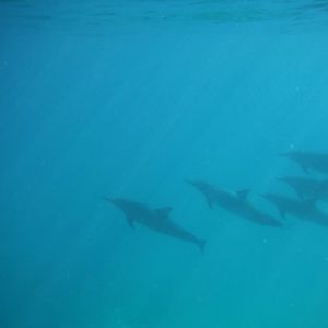 イルカは野生なので、近くで泳げるかどうかは運次第。私たちの時は、港を出てすぐにイルカを発見したのですが、近くまで行く前に離れてしまい、離れたところから一瞬しか見られませんでした。
