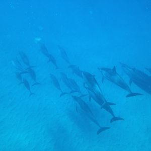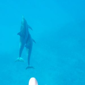 On September 9th, we participated as a couple. We were lucky to encounter dolphins swimming in the shallow waters quite quickly, allowing us to get close multiple times without using much energy! We then moved to another location and encountered dolphins while they were on the move. We were told that we might not see them as often since they were moving, but it seemed they weren't moving as fast as we thought. We were able to keep up with them, and before we knew it, there were dolphins in front, below, and beside us! It was an emotional experience! I envied Daisuke for being able to dive and get even closer to play with them. This was our third dolphin tour, including other tour companies, and this one had the most content. Thank you very much. But I wonder if there are times when you really can't see them much. It was almost hard to believe.