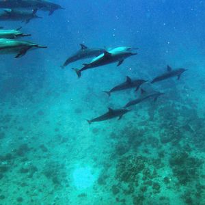 We saw a lot of dolphins on the way to the point. I was excited to see baby dolphins jumping and being quite friendly. Unfortunately, we couldn't find any sea turtles at the point, but we enjoyed snorkeling there. The local staff were fishing.