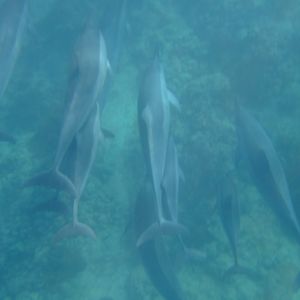 野生のイルカはすぐに現れて、あとはボートから順番に次々飛び込んでいって。どんどんイルカの群れが来て追っているというより、下を通って行く感じでした。初めて生でイルカを見て感動なのに、声まで聞こえてきてもっと感動でした♪