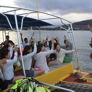 I participated with a senior colleague from work. The staff were very friendly, and there was music playing on the boat, creating a fun atmosphere. I was expecting a BBQ on board, but it was just simple hamburgers, which was a bit disappointing. However, they were very delicious! Everyone had the chance to see dolphins and sea turtles, as we were able to enter the water twice at the designated points. The hula dancing was physically demanding, but I enjoyed the whole day. I think it would be a lot of fun to participate with a large group of friends.
