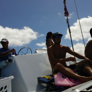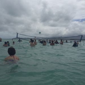 The staff were incredibly friendly and it was a lot of fun. The ocean was beautiful, the boat ride was pleasant, and playing beach volleyball was enjoyable. Snorkeling was great too, as I got to see beautiful fish and turtles. But the highlight was definitely seeing six manta rays swimming in a circle—what an amazing experience! Also, the burgers that the captain grilled were incredibly delicious! They might have been the best burgers I've ever had in Hawaii. Next time, I want to go to the sandbar on a clear day. I definitely want to participate again next year.