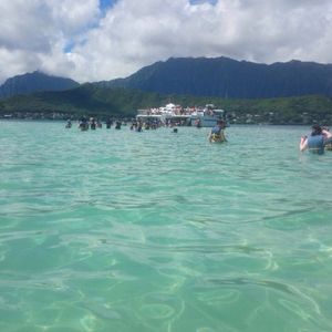 Last year, I couldn't participate due to being fully booked because I applied at the last minute, but this year I made a reservation about two months in advance and was looking forward to it. The weather on the day was decent. I arrived with high hopes of what the heavenly sea would be like. The sandbar had water up to my knees. However, this was unavoidable due to the tide... I was expecting to see something during the next snorkeling session, but I found myself wondering what they wanted to show us at a point where we just lined up with masks and no fins, going back and forth a bit before it ended. I was left thinking that Hawaii is really not a place to play in the sea.