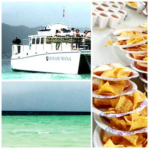 サンドバーは、水位か浅く綺麗で、海が苦手な主人も楽しんでました。皆でバレーボールしたり、船内ではギターの弾き語りが聞けたり、お昼ご飯のハンバーガーも美味しかったです♪