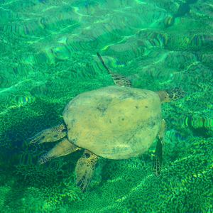 船の上からとシュノーケリングの時にウミガメが見られて癒された。