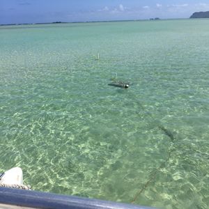 初めてのサンドバー体験ですテンションMAX!昨日まででずーっと快晴!今日は・・ど、ど、どんより~~しかも小雨まじり。ヨットハーバーに到着時雨はあがったものの、相変わらず曇り空。肌寒いが、気を取り直していざ出航ウミガメウォッチへ。11時の方向マンタ~ えっ?マンタ?でもウミガメより見れる確率が少ないそうだ。ラッキー!無事ウミガメもいっぱい見れてサンドバーへ。潮位は事前確認済みの為だいたい予想どうり、入り始めは少し冷たいがすぐ慣れる。しかし気持ちいい!!曇りでも透きとおった海はキレイだ~これで天気が良ければサイコーだったのになぜこの日だけ?しかも午後は晴れ。自分の運の悪さか・・次回の課題です。