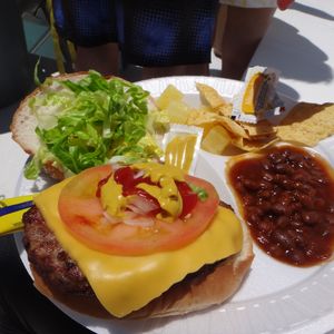 They grilled the patty (probably from Costco) on the boat, and it was juicy and tasty.