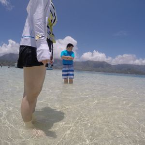 I finally got to visit the sandbar that I had wanted to go to for a long time. The Japanese guide was very friendly and fun, and we were able to take family photos in various poses at the sandbar, which became a wonderful memory! It was also great for my second grader to practice snorkeling in the shallow waters around the sandbar. We even got to see a large sea turtle, making it the best day ever!
