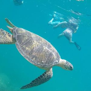 We were able to see sea turtles, and snorkeling was really fun! However, we encountered a sudden downpour, and the waves became rough, so we had to retreat to the boat early. That was disappointing.