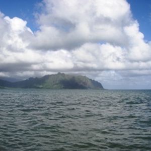 快晴のワイキキとは裏腹に、カネオヘ湾付近はあいにくの曇り空。しかも楽しみにしていたサンドバーは当日の干潮が午前6時過ぎだったということで、私達が到着した頃には既に膝下くらいまでの水位があり、CMのように白いサンドバーを闊歩・・・という具合にはいきませんでした。なのでどうしてもサンドバーを歩きたい!!という方は事前によく調べていくことをオススメします。