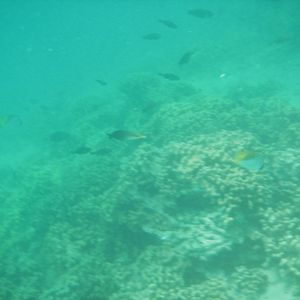 その後ウミガメポイントに移動し、ウォッチング開始。ウミガメより魚(熱帯魚?)の方が目立っていましたが、目の前に泳ぐ魚群が圧巻でした!!