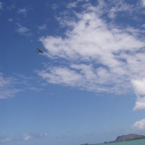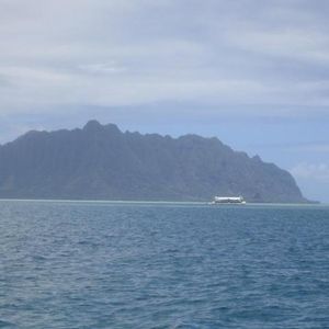 When we actually arrived at Kaneohe Bay, the weather was partly sunny. We took a yacht to the sandbar, and by the time we reached the sandbar, it was sunny, and the sea was very beautiful. The kids were satisfied playing in the water.