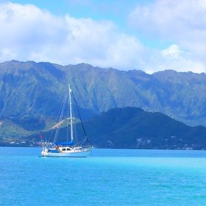 実際カネオヘ湾に到着すると晴れ時々曇りという天気でした。ヨットに乗ってサンドバーへ行くのですが、サンドバーへ到着する頃には晴れており、大変綺麗な海で水遊びをして子供も満足した様子。