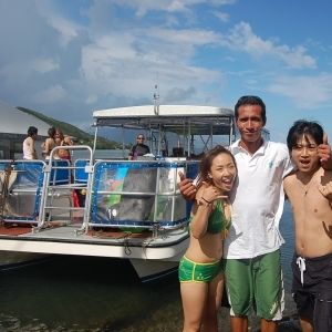 After that, we had the opportunity to snorkel at two locations. The first spot was for seeing fish, and the second was for seeing turtles. My 7-year-old child can swim about 25 meters, but the deep water where they couldn't touch the bottom seemed scary, so they decided not to snorkel. Only my spouse and I participated in snorkeling. Many families had their small children waiting on the yacht. However, the staff kept an eye on them, so it was reassuring. All the staff were full of hospitality, and the conversations were enjoyable. I particularly enjoyed chatting with a staff member named Yuko.
