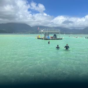 I go to Hawaii at least once a year but never knew about the sandbar until a year ago when friends took us out on their fishing boat. It was such a cool experience that this time I decided to book this excursion and it was the best experience ever! The boat they took us out on was big and clean with toilets. They had refreshments, doughnuts and a really good musician that played for us on the way out and back. Once we got to the sandbar, they had floating barge, kayaks, paddle boards and snorkeling all set up and ready to go in waist deep water all around. It was perfect for my 6 year old. There was a staff member to help us at each station and they were really attentive and helpful. I've been telling everyone that a trip to Oahu is not complete unless they experience this.